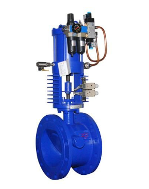 阀瓣采用大角度斜置,缩短启闭行程,并有气(液)压助关,实现快速关闭。大偏心金属密封结构,加上阀瓣受气(液)压助关推力,达到止回的目的,三维偏心锥面密封结构,开启密封即分离,关闭接触即密封,在高温工况下不会出现封圈卡死现象。在动作油缸和阀体之间装有散热支架,防止阀门的热量传递到动作油缸上,延缓了油缸内的密封件,提高了使用寿命。阀瓣和快关装置的是处于分离状态,阀门开启时,油缸只是一个蓄能的动作。在系统正常工作的时候,此阀门相当于普通止回阀,阀瓣处于自由活动状态。在紧急事故时,液压缸动作并释放压缩弹簧能量,达到快速关闭的目的。