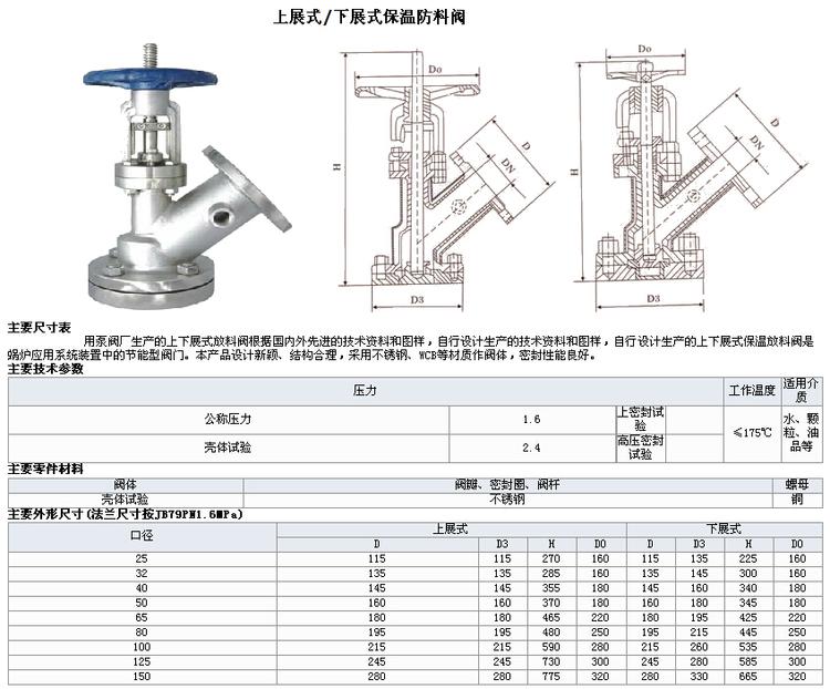 保温放料阀以及上展示保温放料阀和下展示保温放料阀主要外形尺寸: