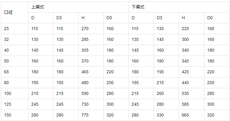 保温放料阀分为上展式保温放料阀,下展式保温放料阀详细参数尺寸图如下: